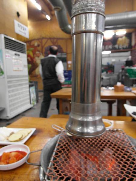 這個吸煙的管子,我一開始還想說,怎麼離烤盤這麼近,這樣好難烤肉,結果一直到導遊走過來,把管子往上一抬,我才驚訝的發現這個管子能夠伸縮自如,就跟魯夫的手臂一樣,好神奇!