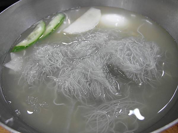 這個是冷麵,跟我想得有點不太一樣,當時我點的時候,還以為會是像涼麵那種,結果端上來才發現完全不是這回事,而且這碗是用超大碗公裝的,根本吃不完啊啊啊啊啊啊!!!不過口味很爽口,很好吃,裡面還有放小黃瓜、蘋果、半顆水煮蛋。