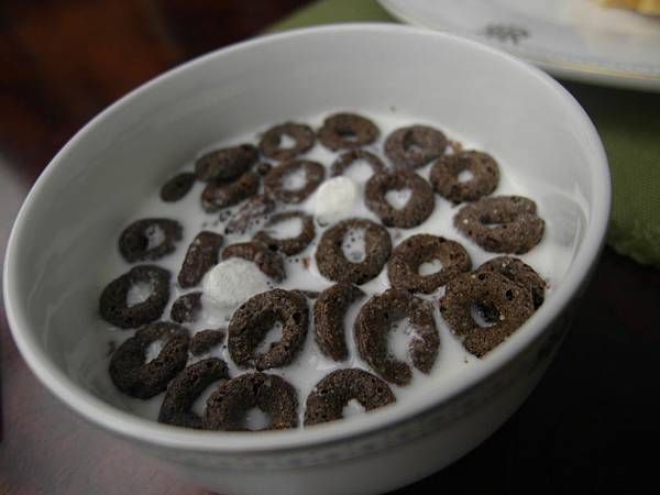 這是每一天早餐都會看見的牛奶麥片。據吃的人說,巧克力麥片並沒有很濃郁,不像台灣一樣加了牛奶之後,就會變成巧克力牛奶。口味有點太過清淡了。