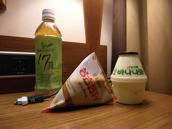 最後來曬一下我們在7-11買的飲料。從左到右分別是17茶、咖啡牛奶,還有草媽指定的香蕉牛奶。