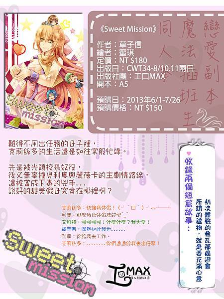封面是由蜜琪老師繪製,特典部分贈送的是小禮物,這部分的圖則由另外一位繪師-非光繪製。